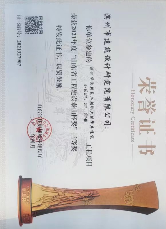 公司勘察設計的濱州醫(yī)學院附屬醫(yī)院門診醫(yī)技病房綜合樓項目榮獲國家優(yōu)質工程獎;濱州華濱新苑二期職工保障房住宅小區(qū) 2#、5#、8#樓、濱州學院民用航空實驗實訓樓三號樓、濱州市市城區(qū)老舊小區(qū)棚戶區(qū)改造項目一期(民安馨苑)5#樓獲山東省工程建設“泰山杯”獎三等獎;7人獲得山東省“土地杯”農村新型住房建筑設計優(yōu)秀參賽作品獎;1人獲得2022年濱州市建筑設計BIM技術應用技能競賽二等獎;1人獲得2022年濱州市建筑設計BIM技術應用技能競賽三等獎;1人獲得2022年濱州市建筑創(chuàng)意設計技能競賽一等獎;2人獲得2022年濱州市建筑創(chuàng)意設計技能競賽二等獎;2人獲得2022年濱州市建筑創(chuàng)意設計技能競賽三等獎。
